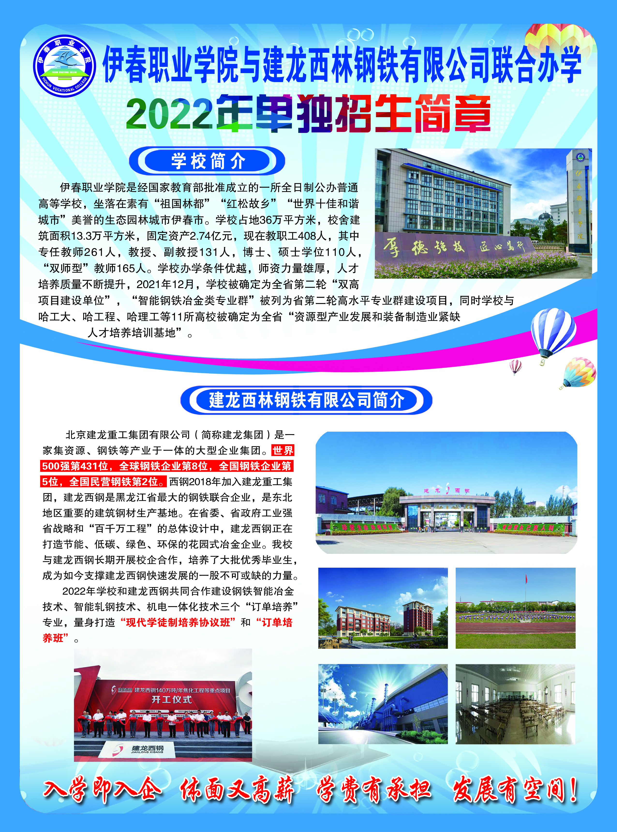 伊春职业学院与建龙西林钢铁有限公司联合办学2022年招生简章