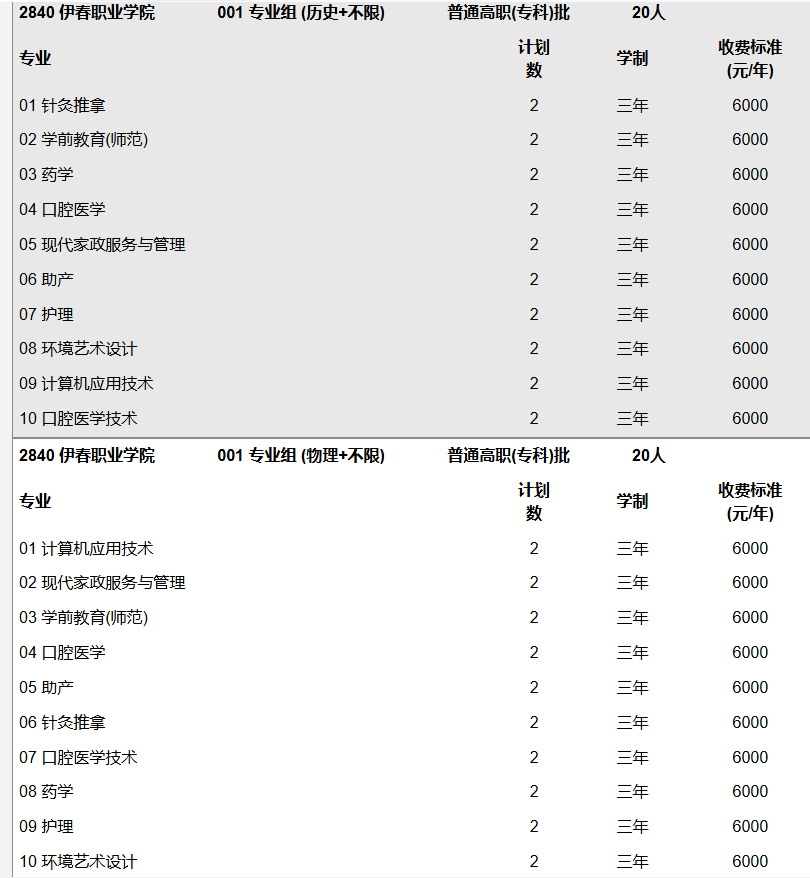 伊春职业学院2024年安徽省招生计划