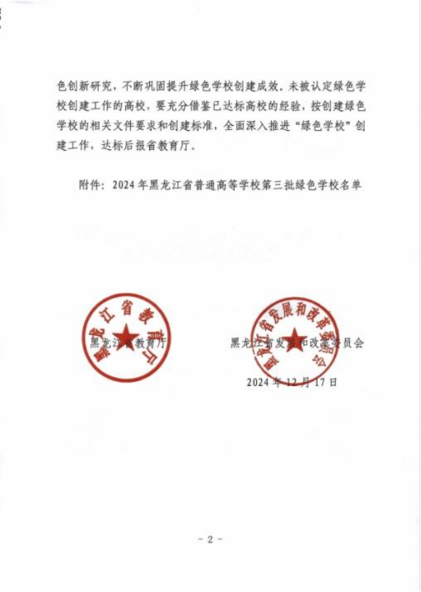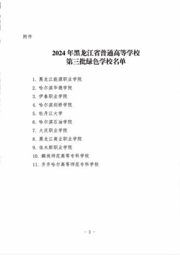 近日,《关于公布黑龙江省 2024 年高校绿色学校创建工作评审结果的通知》发布。伊春职业学院被认定为黑龙江省第三批“绿色学校”,这是我校扎实推进生态文明建设的重要标志性成果。