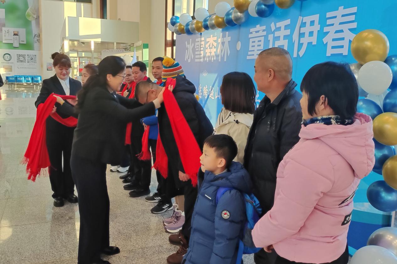 我校在林都机场举行了热烈的欢迎仪式迎接远方的客人。伊春职业学院党委副书记王凤华、伊春市文化广电和旅游局副局长栾林、伊春市机场副总经理李柏军出席活动。精彩的民乐演奏拉开了欢迎仪式的序幕,王凤华为交流团佩戴红色围巾,送上真挚的祝福,栾林和李柏军分别送上精美的文创礼物、伊春市文艺志愿者协会的书法作品,每一份礼物都承载着对茂名客人的深情厚谊和美好祝愿。