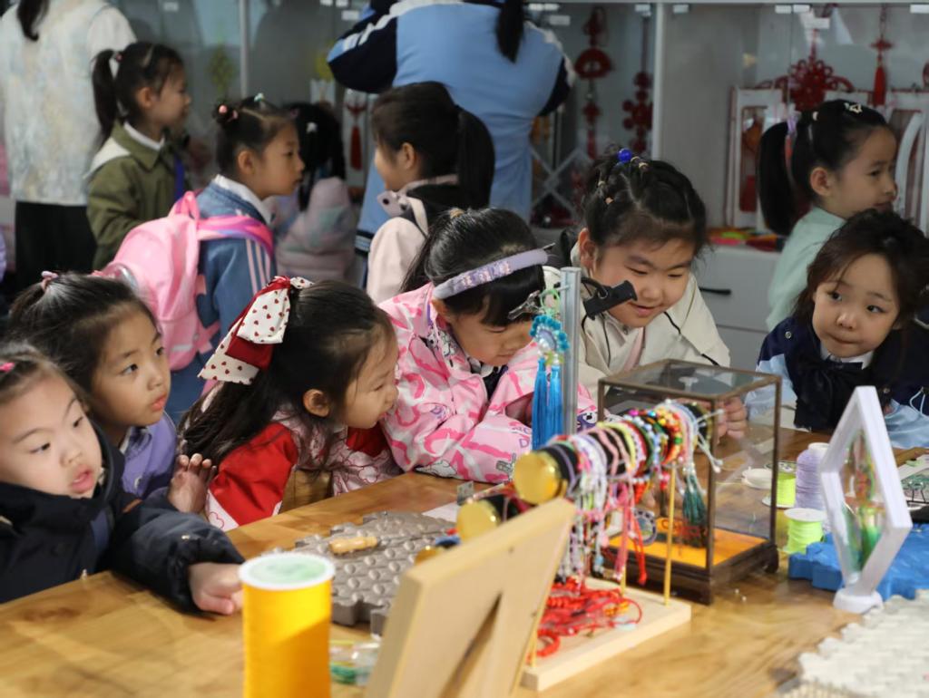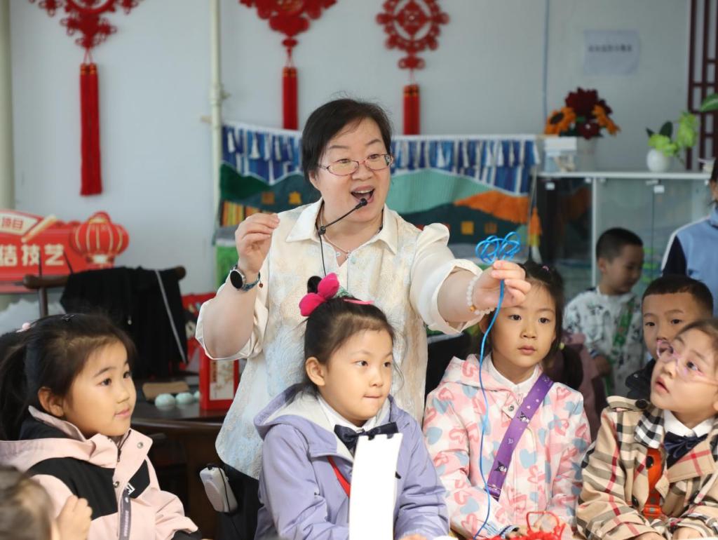 活动还融入了非遗文化体验,来一场阅读与传统文化的邂逅。 孩子们走进中国结艺工作室,聆听老师讲解中国结的历史与寓意。一根根红绳在指尖穿梭,缠绕成象征吉祥的绳结。阅读与手工艺的结合,让文化传承的种子在幼儿心中悄然萌发。