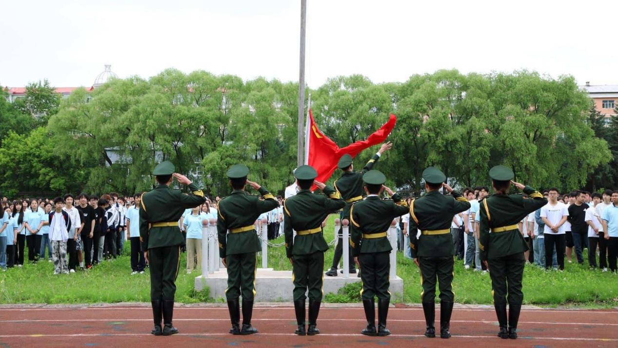 7月1日清晨,全体师生肃立于校园广场,目光追随冉冉升起的五星红旗,齐声高唱国歌。歌声中,升腾着中华儿女的骄傲和自豪。