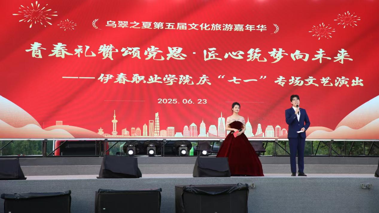 师范学院深度融入区域文旅发展大局,精心策划并承办乌翠之夏第五届文化旅游嘉年华——“青春礼赞颂党恩·匠心筑梦向未来”伊春职业学院庆“七一”专场文艺演出。演出以红色文化为基调,深度融合职业教育特色,厚植师生爱党爱国情怀,全方位展现学院办学成果。