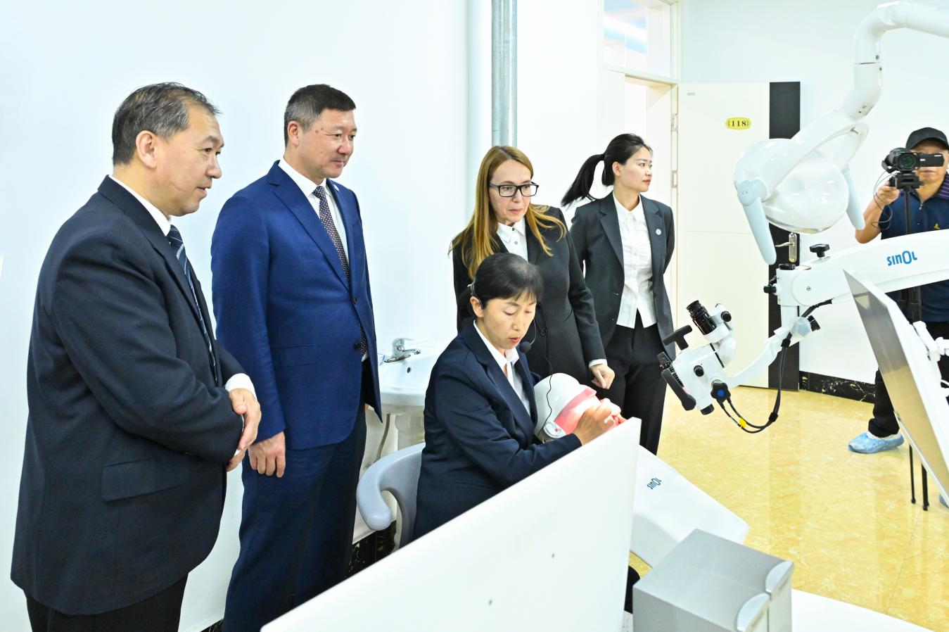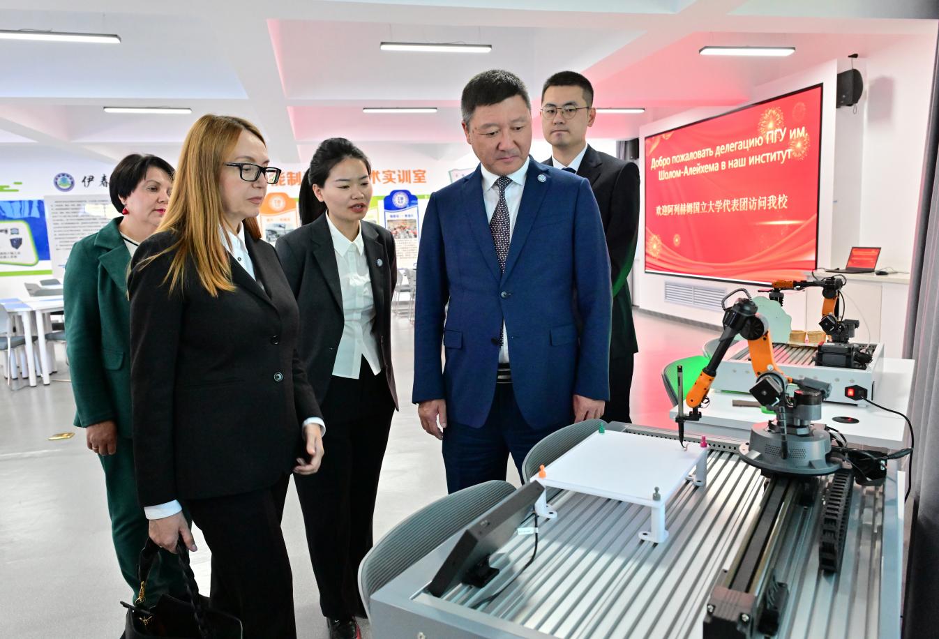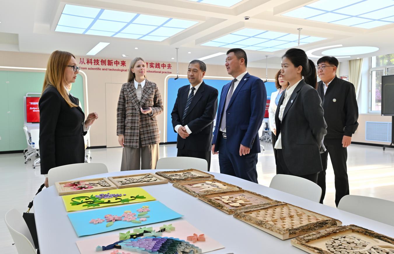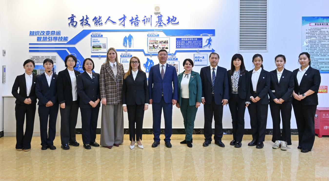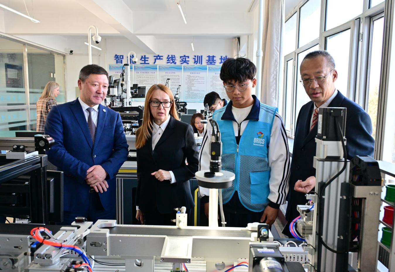 巴热诺娃一行在院长王春海的陪同下,参观了工程应用技术学院智慧化生产技能实训室和机器人实训室、附属幼儿园、师范学院智慧教室、口腔医学院虚拟仿真实训室以及护理学院技能实训室,深入了解了学院在职业教育方面的特色与成果。在工程应用技术学院智慧化生产技能实训室,俄方代表对学院将机器视觉、运动控制等技术融入教学的创新实践表现出浓厚兴趣,现场观摩了学生运用全新设备进行仿真生产线全流程操作的演示。