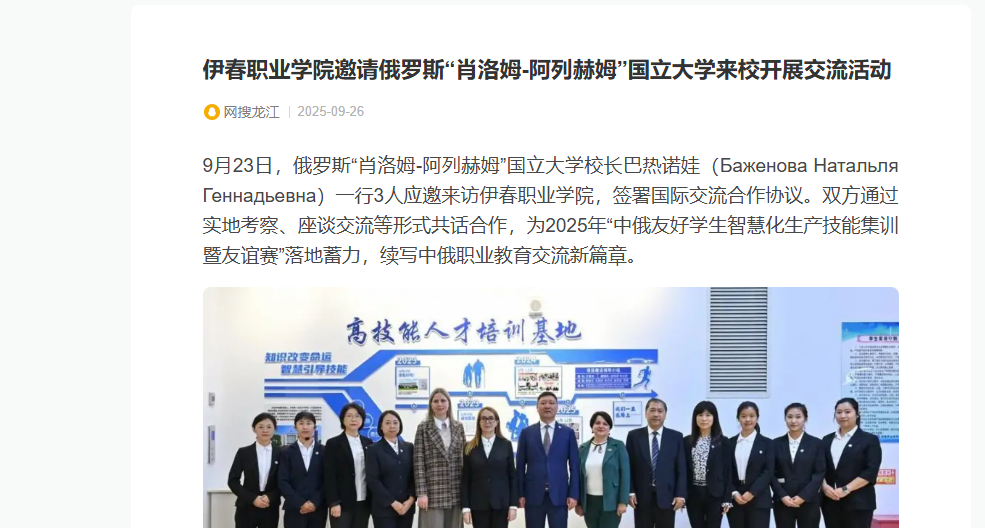 此次交流既是对两校多年友好合作的延续,更是双方“技能共训、文化共融、友谊共建”的生动实践。未来,双方将以技能合作为纽带,持续推进师生互访、学术研讨、海外实习等多元化合作项目,为中俄边境地区教育交流与人才培养注入新活力,为“职教出海”战略增添新动能。