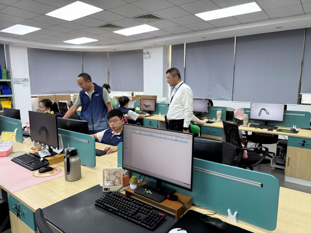 校企双方围绕合作模式、人才培养、实习就业、技术服务等议题展开深度交流。在两家企业,王春海院长一行先后参观了义齿设计中心、数字化生产车间、质量检测实验室等核心区域,近距离观摩了数字化扫描、3D打印等现代化义齿制作流程。