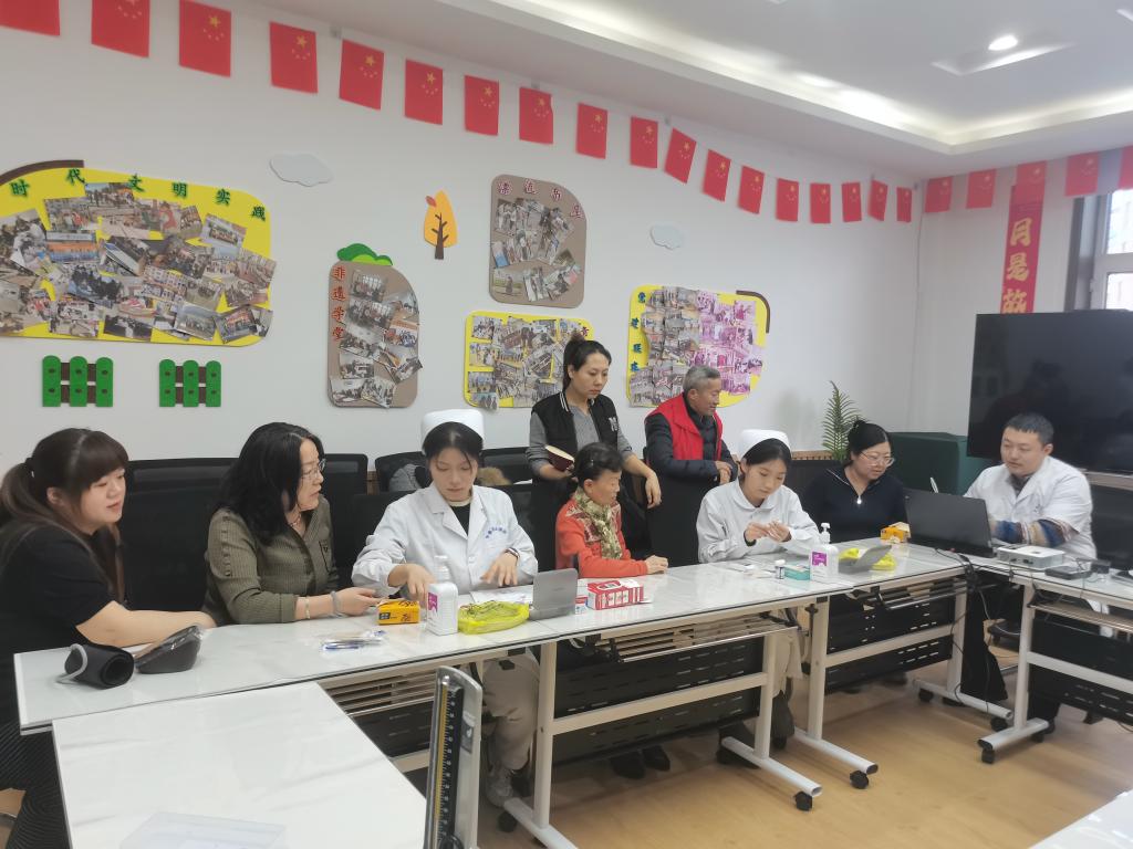 活动现场,志愿者们快速搭建临时服务点,摆放血压计、血糖仪、骨密度测定仪等设备,有序引导老人排队。血压、血糖测量区,志愿者认真记录数据,对指标偏高老人,提醒调整饮食、规范用药并定期复查。骨密度测定区,志愿者针对老年人骨质疏松问题,从补钙、运动、防护等方面给出个性化建议。同时,志愿者们用通俗易懂的语言讲解老年常见病的预防、用药及康复知识,为老人答疑解惑,树立科学健康观念。