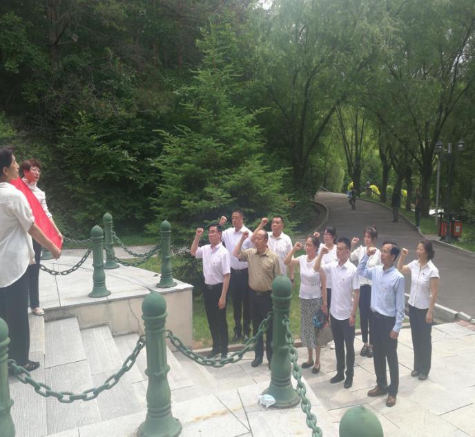 6月29日上午伊春职业学院机关三党支部全体党员来到伊美区北山公园东北抗日联军军政干部学校纪念碑前,开展了“弘扬抗联精神、传承红色基因”主题党日活动。