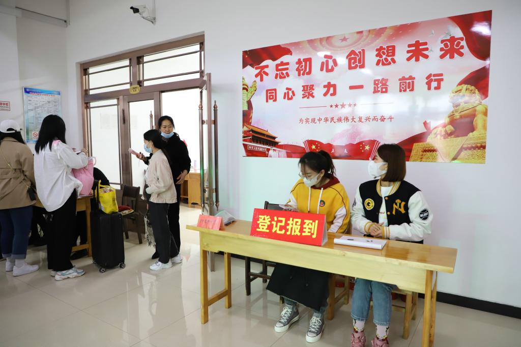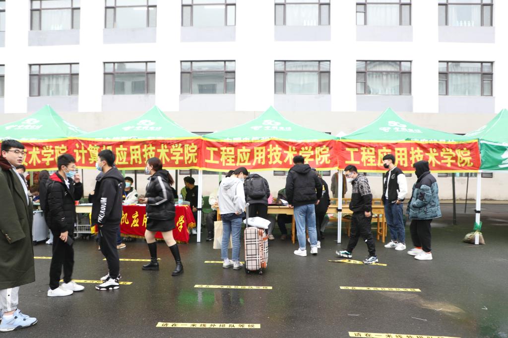 报到当天,学校采取了严格的疫情防控措施,密织校园疫情防控网,筑牢师生安全屏障。东门新生入口处,在工作人员和志愿者的引导下,新生依次扫健康码、行程码,进行核酸报告查验、测温后,有序进入校园,到达迎新点,在工作人员的指导和志愿者的帮助下,完成手续办理、缴费、行李领取、寝室入住。