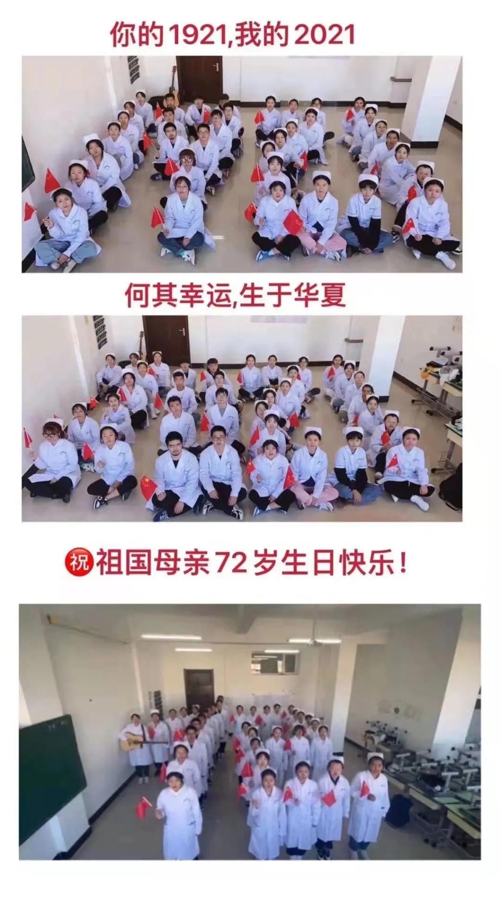 国庆期间,伊春职业学院全体师生以多种方式祝贺祖国72周年华诞,一起向伟大母亲深情告白——我爱你,中国!