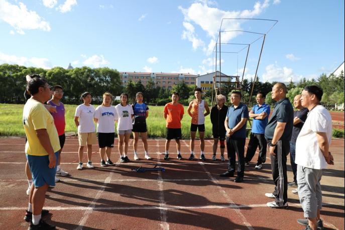 8月9日下午,校党委书记麻昌杰一行慰问暑期留校集训备战黑龙江省第十八届学生运动会的师生。校领导张林生、彭晖、赵科研、韦立宏等一同走访慰问。