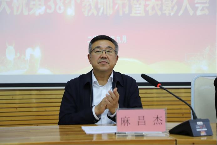麻昌杰在讲话中代表学校党委向受到表彰的先进集体和个人表示热烈的祝贺,向一直以来为学校事业发展默默奉献的全体教职员工致以亲切的慰问和节日的祝福。