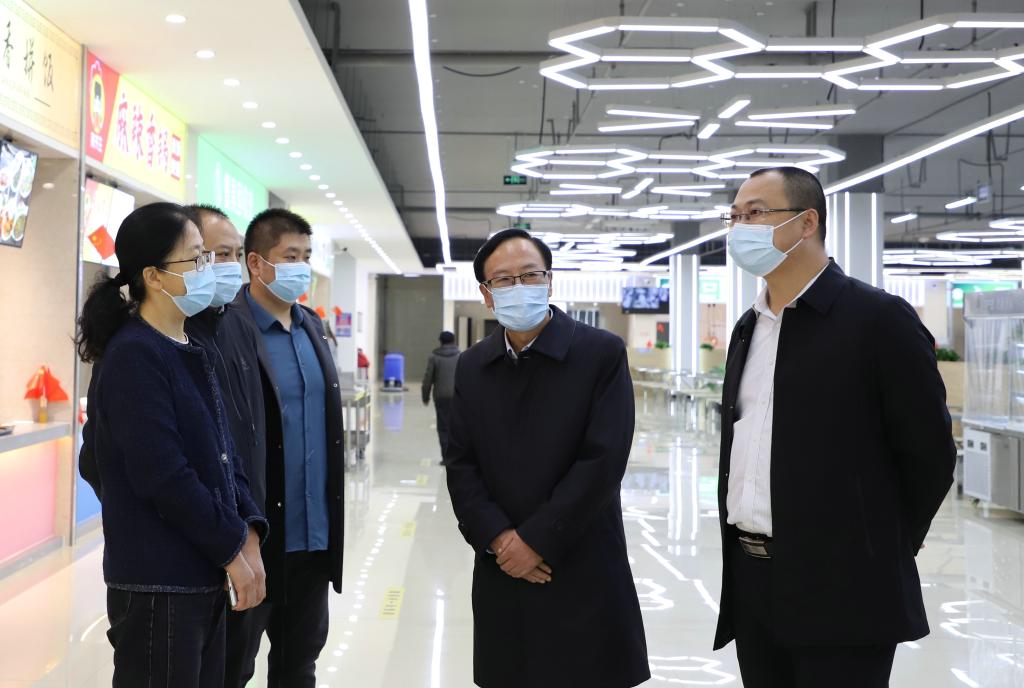 督查过程中,韩殿君一行实地察看了学生食堂、校园超市、学前教育实训基地等重点场所。王凤华详细介绍了返校学生分类管理及健康监测管理、学生错时错峰用餐管理、校内人员核酸检测等情况。