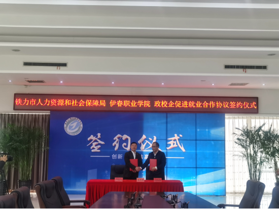 4月26日上午,我校与铁力市人力资源和社会保障局“政校企合作”签约仪式在铁力市经济开发区办公楼会议室举行。