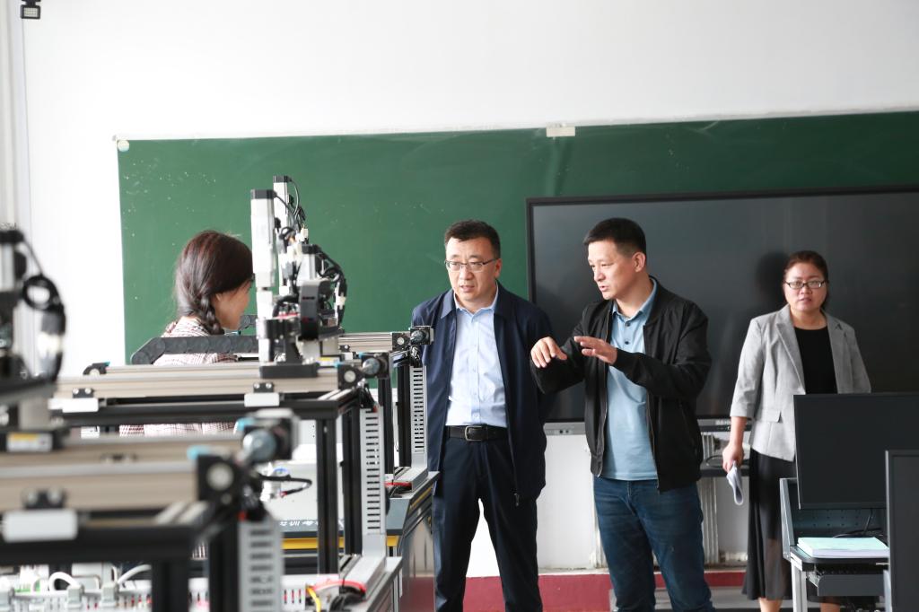 王开成副主任在副院长韦立宏及相关人员陪同下参观了医学技术学院、师范学院、工程应用技术学院实训室。