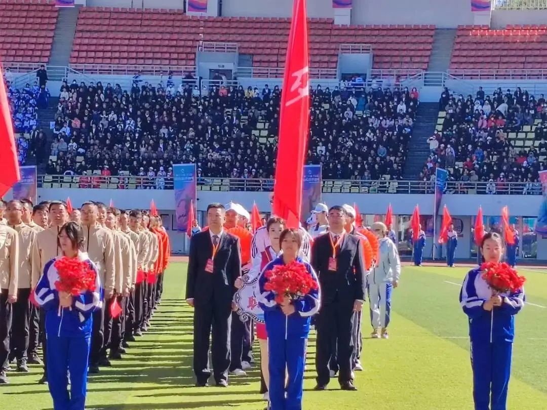 同时,我校16名学生担任执旗手;4名教师和31名学生组成的裁判员团队担任此次运动会的裁判工作;40名学生担任本届市运会开幕式代表团方阵引导员和主席台礼仪服务工作,尽展礼仪风姿,为市运会开幕式添彩。2000名学生在现场观看了开幕式。