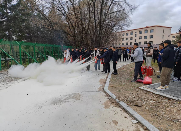 随后由保卫处程生志为同学们讲解了公寓内消防栓和微型消防柜的使用方法,同学们听的十分认真,并有同学积极参与灭火设备的模拟使用。在灭火器实操及模拟训练现场,程生志首先向同学们讲解了干粉灭火器的工作原理、使用方法及注意事项,并在铁盆中点燃明火示范灭火,随后指导学生分组进行灭火实际操作,同学们基本掌握了干粉灭火器的使用方法。