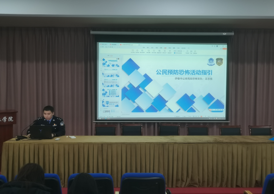伊春市公安局反恐怖支队干警还为学生分发了反恐怖宣传手册,播放了反恐怖小视频,进行了战术展演,晚上18时30分,在图书馆一楼进行了消防安全和反恐怖宣传讲座,140名同学聆听了讲座。