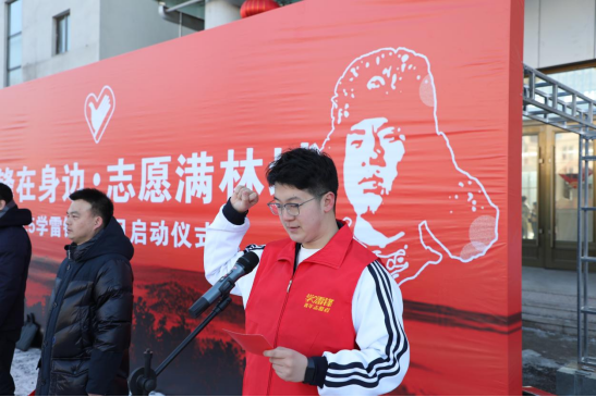 仪式上丁利伟宣读《伊春职业学院2024年志愿服务活动方案》,青年志愿者代表王浩同学宣读倡议书,领誓人周文博同学带领全体青年志愿者共同宣誓。张杨宣布2024年3·5学雷锋活动月启动。