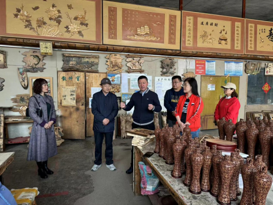我院调研人员在王美江的陪同下参观了公司的生产车间、雕刻室、绘画室、创新工作室和展厅。双方就人才培养、产学研合作和产业学院建设等内容进行深入交流,初步达成合作意向。