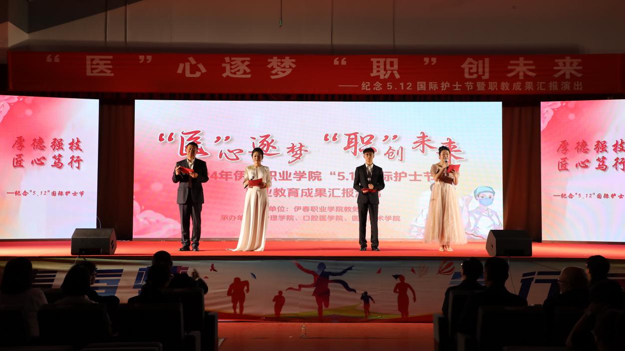 “暖心有爱白衣冠,妙手无他万事难。遍撒花香杏林路,一腔热血护康安。”为贯彻落实《国家职业教育改革实施方案》精神,营造职业教育改革和发展的良好氛围,充分展示我校职业教育丰硕成果,也为进一步弘扬南丁格尔救死扶伤的人道主义精神和无私奉献的高尚品质,在第113个“512国际护士节”来临之际,由伊春职业学院教务处主办,护理学院、口腔医学院、医学技术学院承办的“医心逐梦 职创未来”——纪念5.12国际护士节暨职业教育成果汇报演出于5月10日下午2点拉开帷幕。