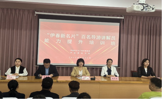 为进一步提升伊春市导游及讲解员的专业素养和服务质量,6月26日,由伊春市文化广电和旅游局携手伊春职业学院共同打造的“伊春新名片”百名导游讲解员能力提升培训班在我校图书馆一楼会议室隆重召开。旅游商务学院院长赵莉莉、教研室主任姚洪英及市文化广电和旅游局的领导出席开班仪式。