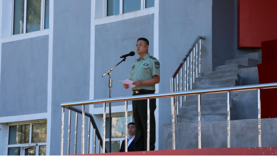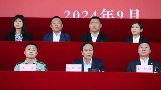 韩殿君代表全校师生员工向不辞辛劳的全体教官们表示诚挚的感谢和崇高的敬意,向即将接受军训洗礼、踏上人生新阶段的各位新生致以热烈的欢迎和美好的祝愿。他说,“古之立大事者,不惟有超世之才,亦必有坚韧不拔之志”。军训是大学生接受国防教育的基本形式,是进入大学后的第一课,他向大家提出三点希望,一是厚植爱国之情,全身心投身军训之旅;二是磨砺强国之志,切实提升军事素养;三是践行报国之行,锻造优良的战斗作风。希望大家向身边人学习,培养塑造善良质朴宽以待人的优良品格、目标坚定努力拼搏的奋斗精神,用坚毅和拼搏铺设成功的阶梯,用品行和学识奠定人生的基石。