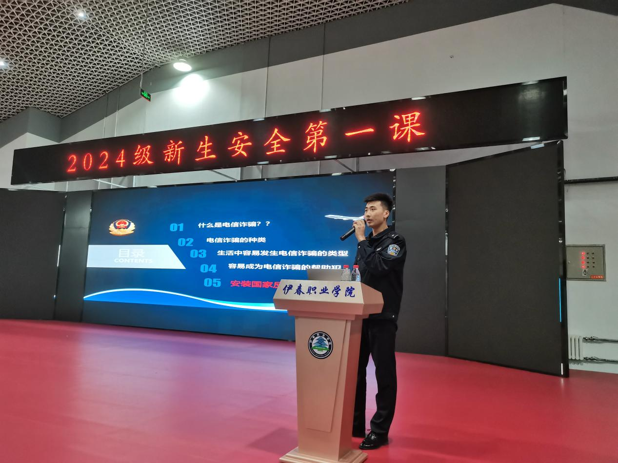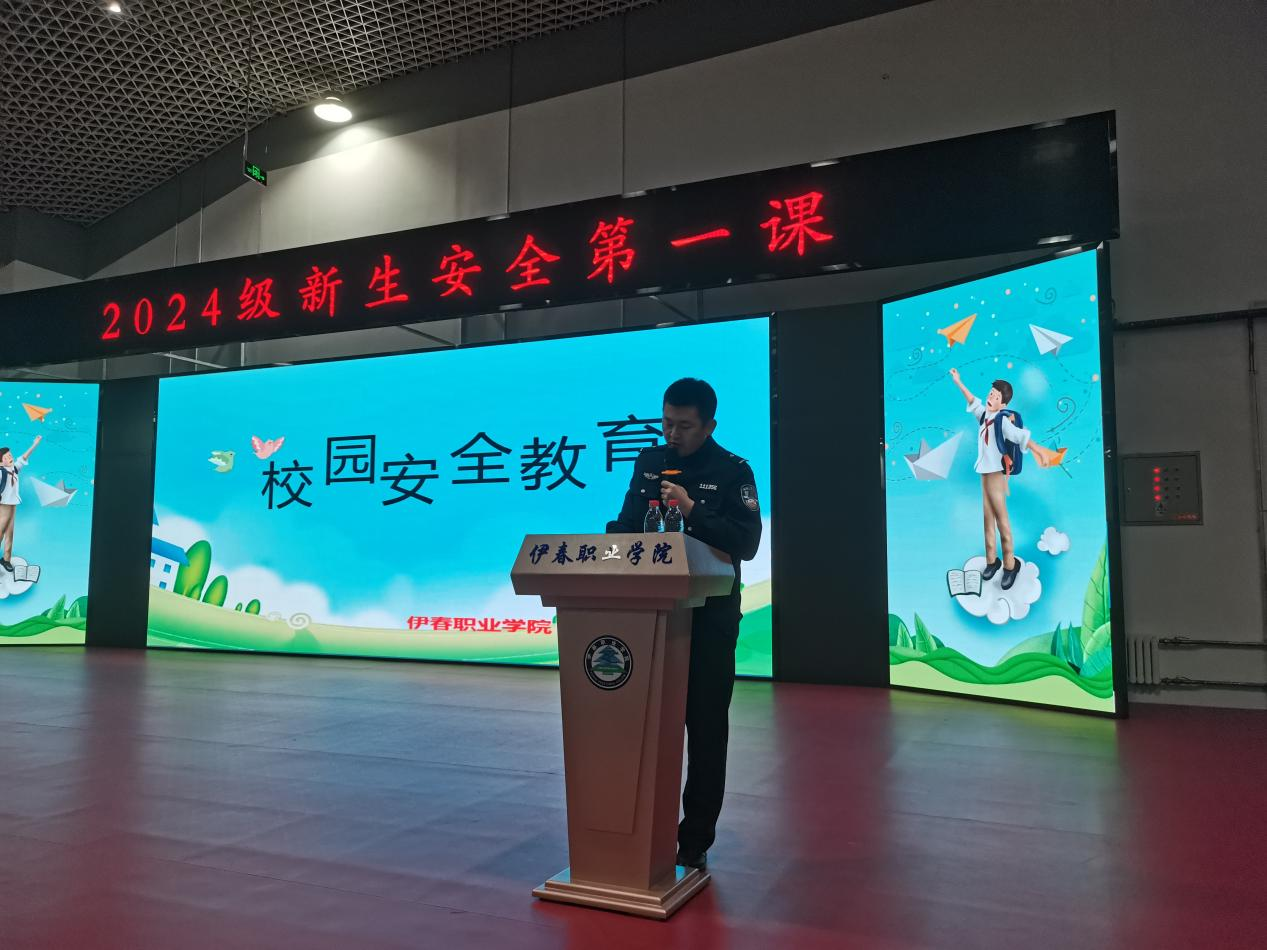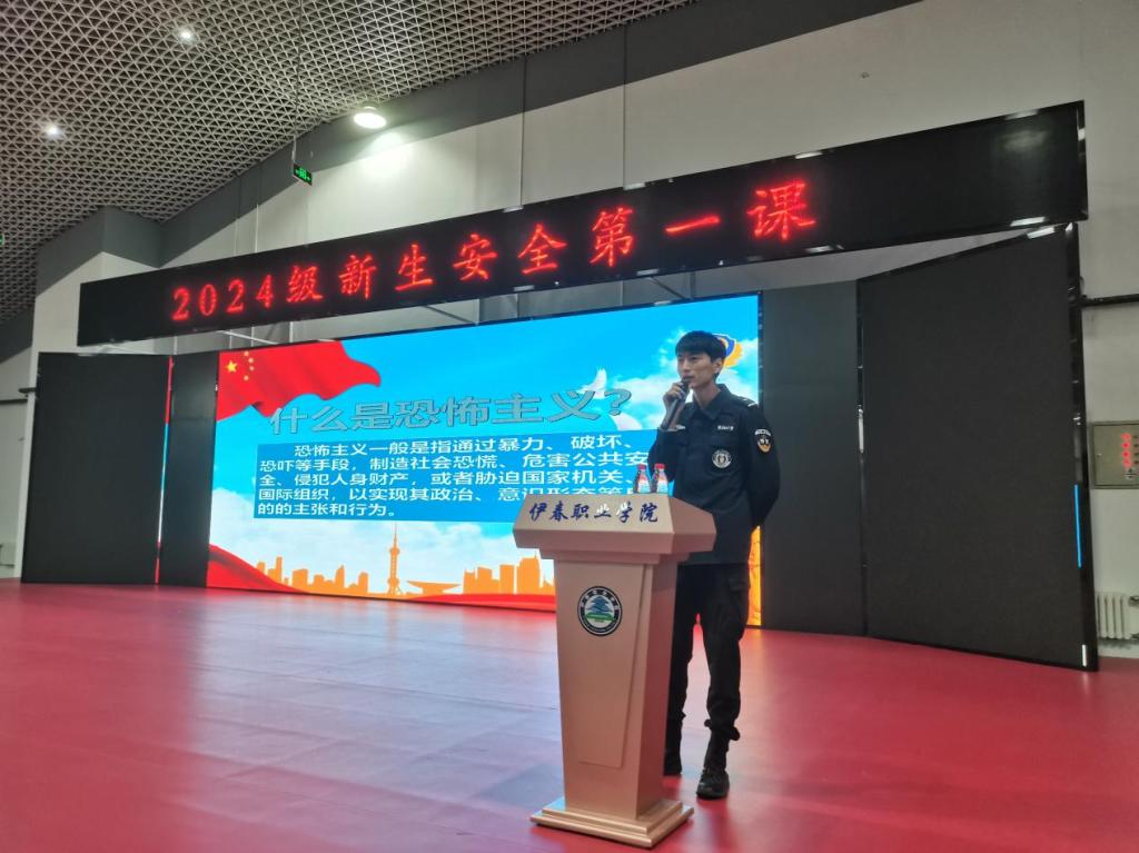 为进一步加强校园安全稳定工作,切实提高我校新生安全意识,9月18日,我校保卫处、学工部联合组织并邀请伊美公安分局刑侦大队、治安大队、政保大队、辖区西城派出所民警到学校开展新生安全第一课法治讲座。讲座在我校医学实训楼五楼举行,二级学院新生570人聆听了讲座。