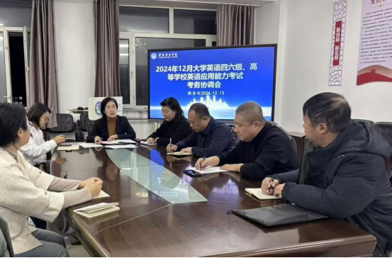 为强化全国大学英语四六级和英语应用能力考试组织与管理,严肃考风考纪,12月13日下午,教务处在1号楼535会议室组织召开2024年下半年全国大学英语四六级考试工作协调会。党委委员、副院长韦立宏,教务处、纪委、宣传统战部、后勤管理处、保卫处等部门人员参加会议,会议由教务负责人朱丹丹主持。