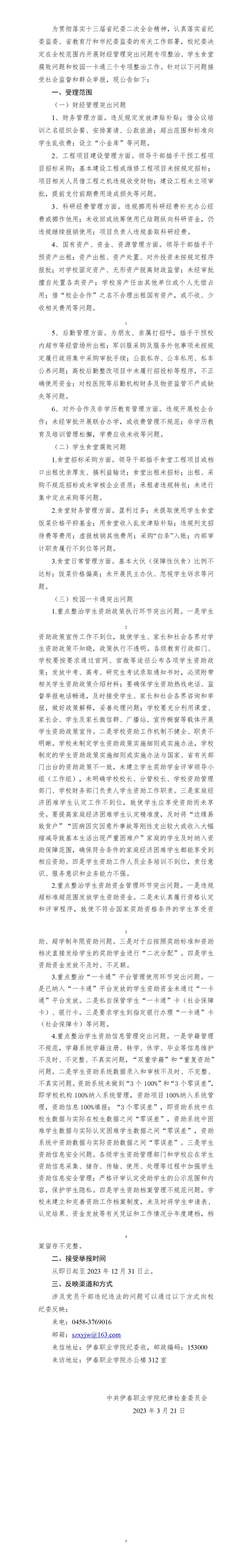 关于受理财经管理突出问题、学生食堂腐败问题和惠民惠农财政补贴资金“一卡通”领域“微腐败”问题的公告