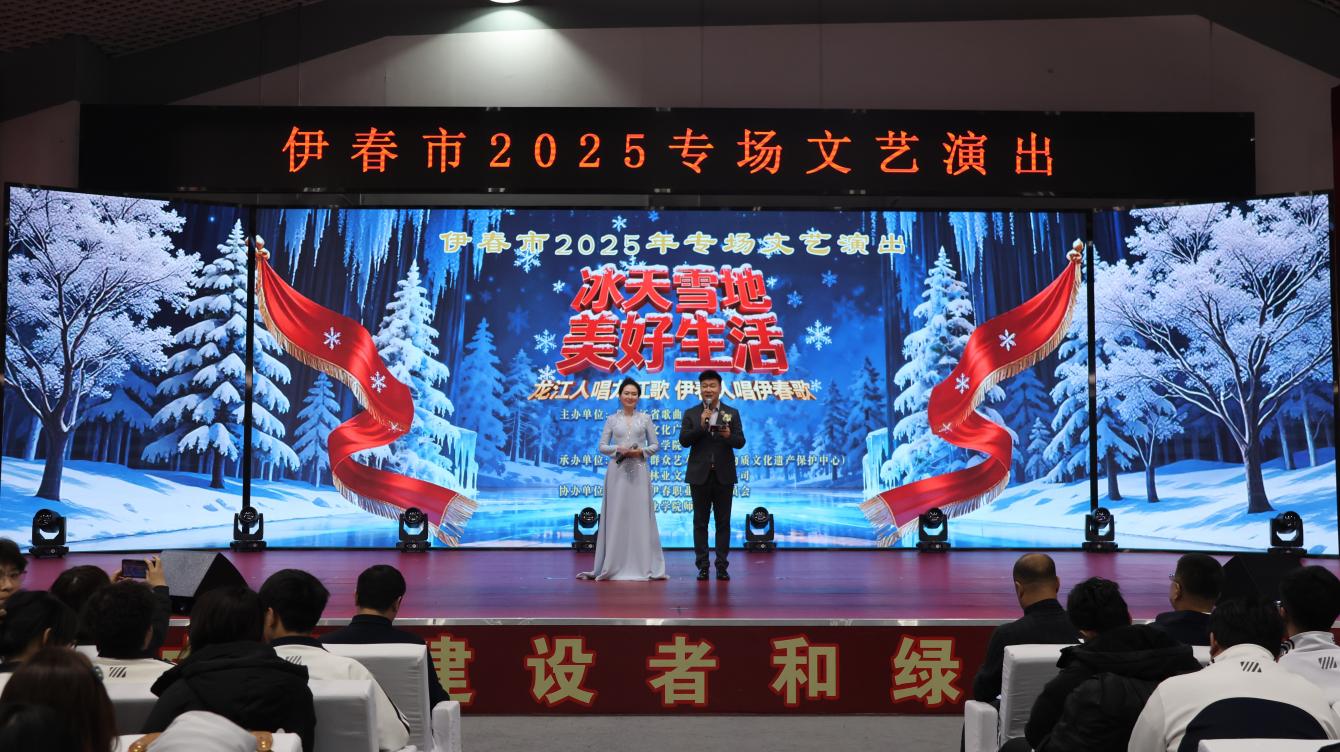 12月16日,“龙江人唱龙江歌 伊春人唱伊春歌”伊春市2025专场文艺演出在伊春职业学院圆满举办。本次演出由我校联合黑龙江省歌曲创作协会、伊春市文化广电和旅游局主办,伊春市群众艺术馆(非物质文化遗产保护中心)、黑龙江林业文工团有限公司承办,校团委与师范学院协办。活动以歌为魂传承龙江文脉,以曲为韵勾勒伊春风华,为伊春市民及我校师生献上了一场兼具思想性与艺术性的文化盛宴。