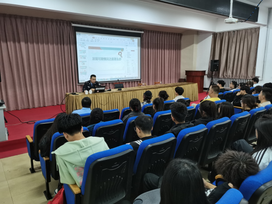 随后,刑事侦查大队王云露警官为同学们介绍了什么是电信网络诈骗,如何做好反电诈工作,如何预防银行卡诈骗和什么是帮信罪等网络诈骗的形式、类型手段、防范措施,让学生学会拒绝,学会利用法律武器来保护自己。