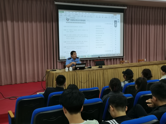为深入推进校园安全工作,增强学生的法律意识,学习反恐知识,遏制校园网络诈骗活动,增强学生防骗意识和识骗能力,营造文明、平安、和谐的校园育人环境。9月11日,保卫处、学工部组织了专题讲座,邀请伊美公安分局为全校各班级的班长进行法制教育安全知识讲座。以此为起点,开启了新学期“开学第一课”。