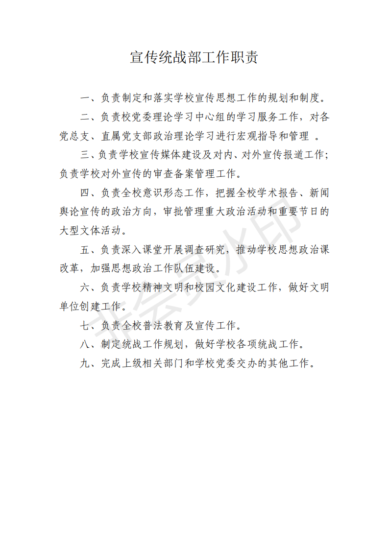 宣传统战部工作职责