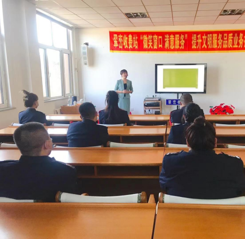 此次培训翠峦收费站领导高度重视,认真组织收费站干部职工和窗口服务人员,共计30余人参加此次培训。此次培训是以“办事提速、服务提质、制度提效、形象提升”为目标,结合窗口工作实际,以“干什么、练什么、缺什么、补什么”为原则,开展岗位大练兵,助力提高翠峦收费站窗口服务质量。通过对窗口服务人员手势礼仪、微笑礼仪的讲授和实训,收费站干部职工及进驻窗口工作人员对服务礼仪有了更新、更全面的了解。