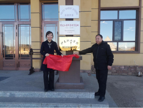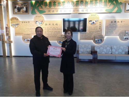 图4-1:与伊春永达工艺品公司举行实训基地校企合作揭牌仪式