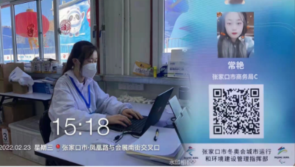 常艳是伊春职业学院旅游商务学院2021级旅游管理专业学生,她在寒假期间回到家乡张家口市报名参加了冬奥志愿者队伍,服务地点在张家口市崇礼区中信建设冰雪小镇项目部,工作岗位是质检岗,工作内容是检查后厨卫生各项工作是否符合质量标准要求 。