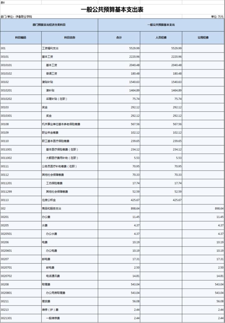 六、一般公共预算基本支出表