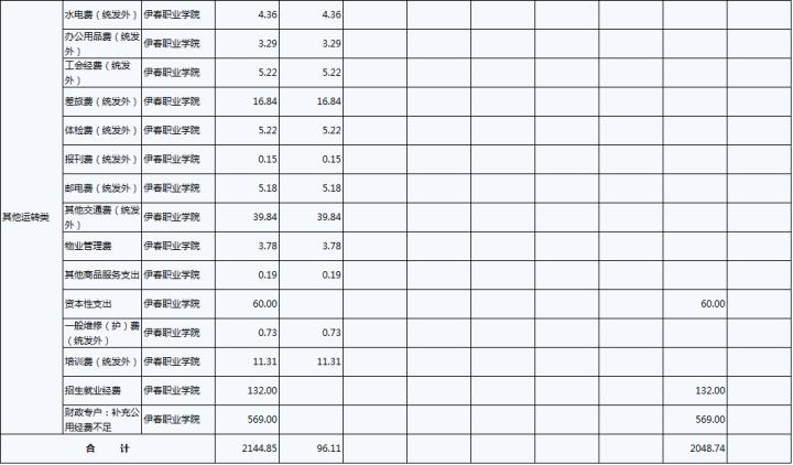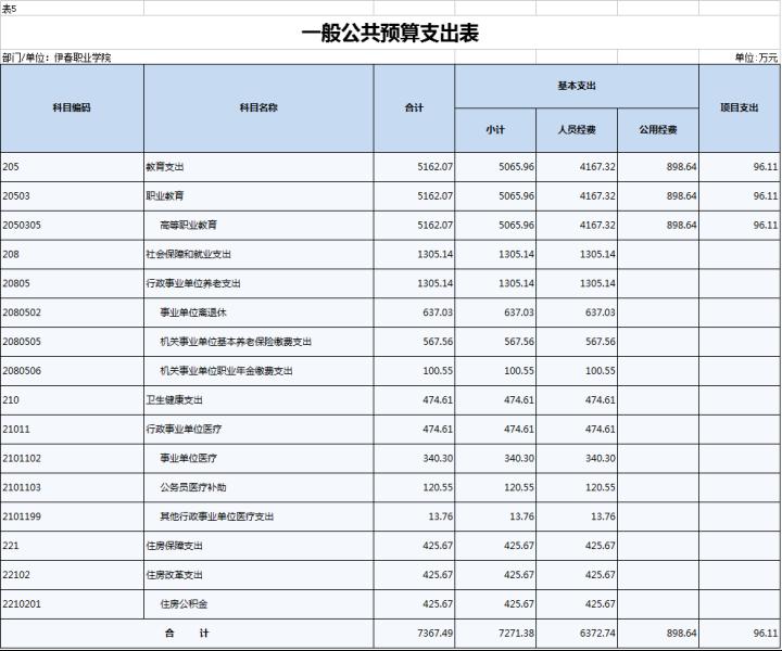 2022年,伊春职业学院一般公共预算支出7367.49万元,其中:基本支出7271.38万元,项目支出96.11万元。