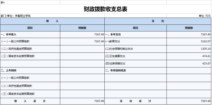 四、财政拨款收支总表