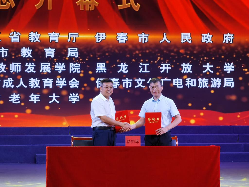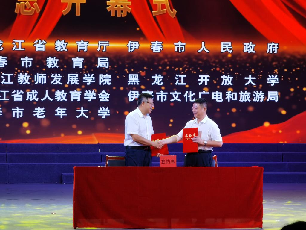 7月30日上午,以“大力发展老年教育 构建终身教育体系”为主题的2022年黑龙江省“全民终身学习活动周”总开幕式在伊春林业艺术剧院举行。在开幕式上,我校党委书记麻昌杰与黑龙江伊春森工集团有限责任公司、建龙西林钢铁有限公司、黑龙江拓盟科技有限公司签订校企合作协议。