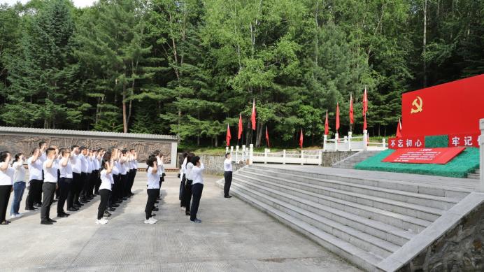 参观结束后,麻昌杰一行来到红色基地——抗联遗址老钱柜,瞻仰了老钱柜纪念碑和浮雕,聆听了“奇袭老钱柜”的抗联故事。在纪念碑前,麻昌杰带领全体党员面向党旗,高举右手,重温入党誓词。