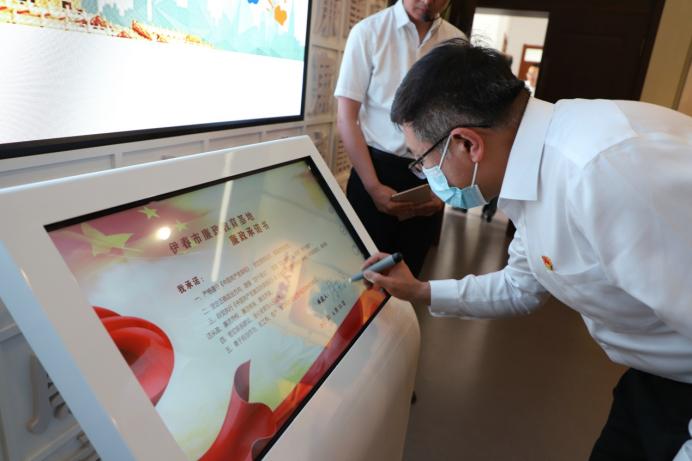 在基地尾厅,麻昌杰书记在基地廉洁承诺书屏幕上郑重签上了自己的名字,表达了在学校各项事业中始终做到廉洁从政、依法治校的坚定决心。