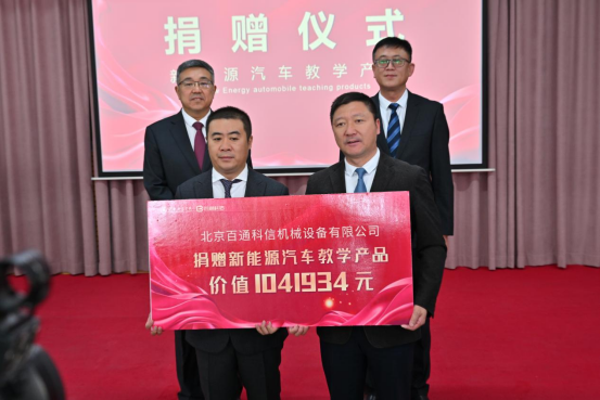在新能源汽车教学产品捐赠仪式上,北京百通科信机械设备有限公司向伊春职业学院捐赠价值一百余万元的新能源汽车实训设备。北京百通科信机械设备有限公司是一家致力成为国内最优秀汽车职业教育服务提供商的国家级高新技术企业、专精特新企业。此次捐赠是伊春职业学院成立新能源汽车实训室以来获得的最大一笔企业捐赠,对伊春职业教育和新能源汽车技能人才培养发挥着重要的作用。