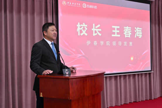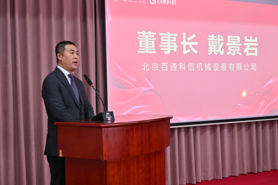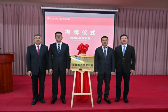 伊春职业学院党委书记麻昌杰为百通科信机械设备有限公司授牌,副市长方春彪和北京百通科信机械设备有限公司董事长戴景岩共同为百通科信新能源实训室揭牌。
