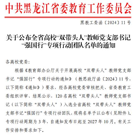 伊春职业学院旅游商务学院党支部始终坚持立德树人根本任务,引导广大师生积极投身强国建设、民族复兴伟业新征程。支部紧紧围绕校党委开展的“样板党支部” 创建活动,积极探索“融合式党建”工作模式,推进党建与业务工作深度融合,发挥党支部书记的“头雁效应”, 建强党支部的战斗堡垒作用,切实发挥党建引领作用,凝聚起推动高质量发展的奋进力量。经黑龙江省委教育工委层层筛选、脱颖而出,成功入选了全省高校“双带头人”教师党支部书记“强国行”专项行动团队,这是我校在党建工作方面再一次取得新成果。