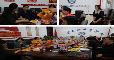 院长王春海到会议室看望大家,送上全校师生对退休教师们的节日祝福。