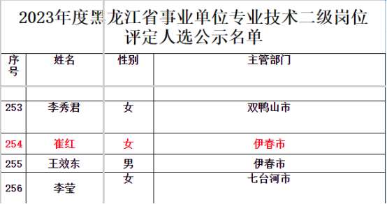 根据《关于做好2023年度全省事业单位专业技术二级岗位参评人选申报推荐工作的通知》(黑人社函〔2023〕511号)安排,经基层单位择优推荐,伊春市主管部门审核确定,省级事业单位人事综合管理部门统一组织资格审核和专家评审,我校崔红教授顺利通过评审,成为我校建校65年来来首位二级教授。崔红教授的成功晋级,使学校师资队伍建设实现了新的突破,为学校内涵建设和林区职业教育事业高质量发展提供了强有力的人才支撑和智力保障。