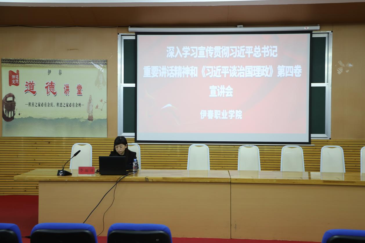 9月23日下午,市委宣讲团走进伊春职业学院开展深入学习宣传贯彻习近平总书记重要讲话精神和《习近平谈治国理政》第四卷专题宣讲报告。学校党政班子成员,各党总支(支部)书记、副书记,思想政治教学部全体教师等聆听专题宣讲。