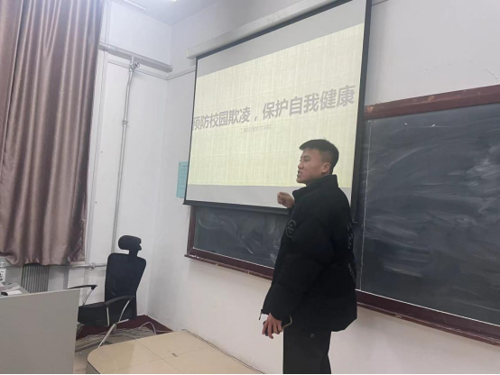 为了预防校园欺凌事件的发生,保障学生们校内的健康、安全,提高学生们自我保护、自我防范的意识,努力树立做到校园安全从我做起的责任感,工程应用技术学生利用晚自习时间,开展主题班会。